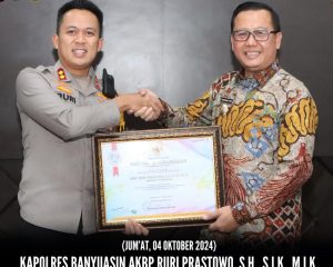 BANYUSIN, JON.com – Kapolres Banyuasin AKBP Ruri Prastowo SH SIK MIK Mendapatkan penghargaan dari Pemkab Banyuasin atas Dedikasi dan Prestasi Dalam Memberantas Peredaran Gelap Narkoba